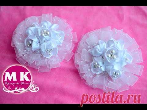 Мастер-класс Канзаши.Цветы из атласных лент. Нарядные банты на заколках к 1 сентября