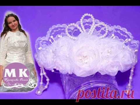 Мастер-класс Канзаши.Цветы из органзы.Свадебная диадема/Wedding tiara of flowers kanzashi
