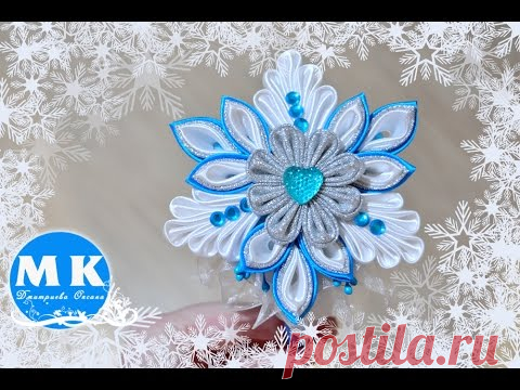 Мастер-класс Канзаши.Ободок на голову.Снежинка Канзаши из атласных лент/Christmas snowflake kanzashi