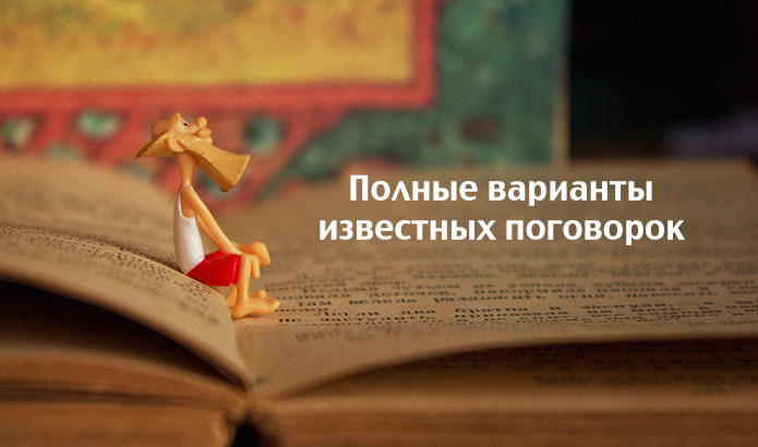 Известные пословицы, которые со временем потеряли половину своего содержания, а вместе с ним и половину смысла. Вполне неожиданно: Ни рыба, ни мясо, [ни кафтан, ни ряса]. Собаку съели, [хвостом подавились]. Ума палата, [да ключ потерян]. Два сапога пара, [оба левые]. Дураку хоть кол теши, [он своих два ставит]. Рука руку моет, [да обе свербят]. Везет как [субботнему] утопленнику - [баню топить не надо]. Ворон ворону глаз не выклюет, [а и выклюет, да не вытащит]. Гол как сокол, [а остер как…
