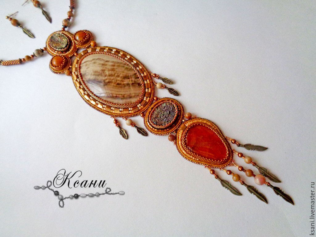 Купить Комплект "Ветер прерий" колье+серьги - рыжий, бронзовый, бронза, индейское украшение, индейцы, ветер