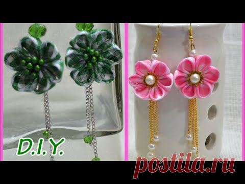 ❃ ❁ ❀ D.I.Y. Kanzashi Flower Earings - Tutorial ❀ ❁ ❃