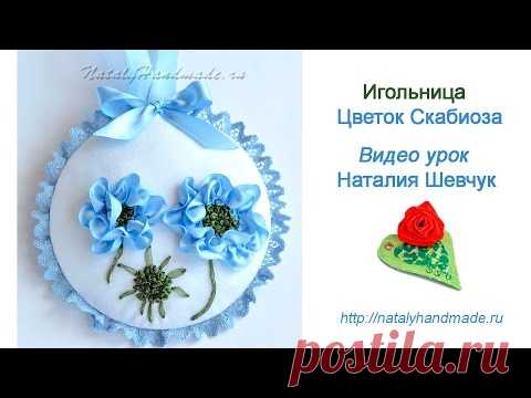Игольница с цветком Скабиоза. Вышивка лентами.