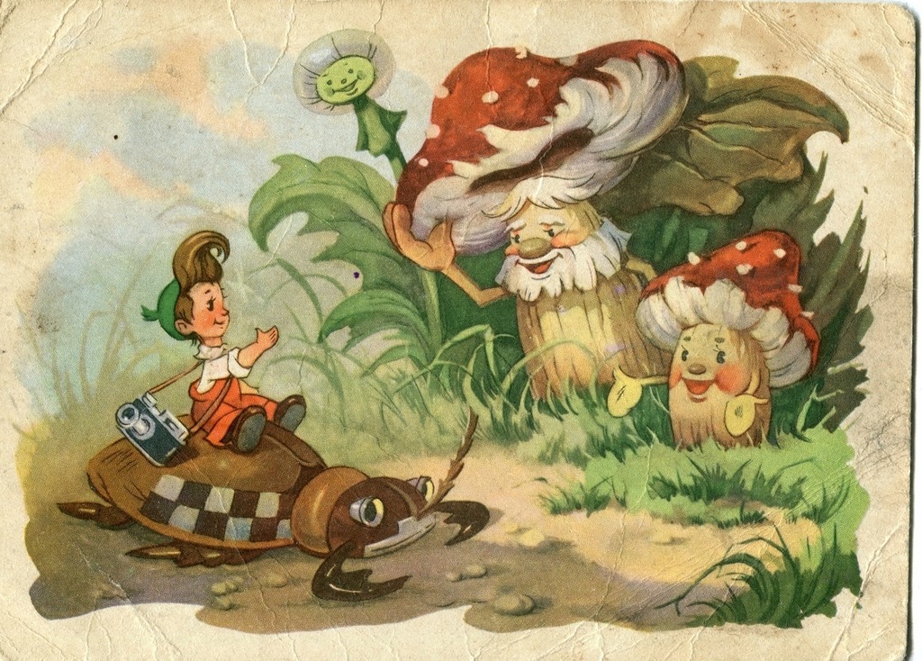 "Приключения Мурзилки" Почтовая карточка серии "Из советских мультфильмов". Издание Министерства связи СССР. 1961 г. Цена художественной карточки с маркой 4 коп. Художник И.В. Знаменский