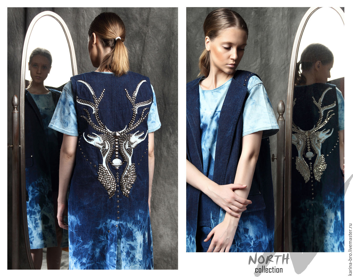 Купить Джинсовый жилет "Мрамор" - голубой, рисунок, мрамор, джинсовый стиль, джинса, жилет
