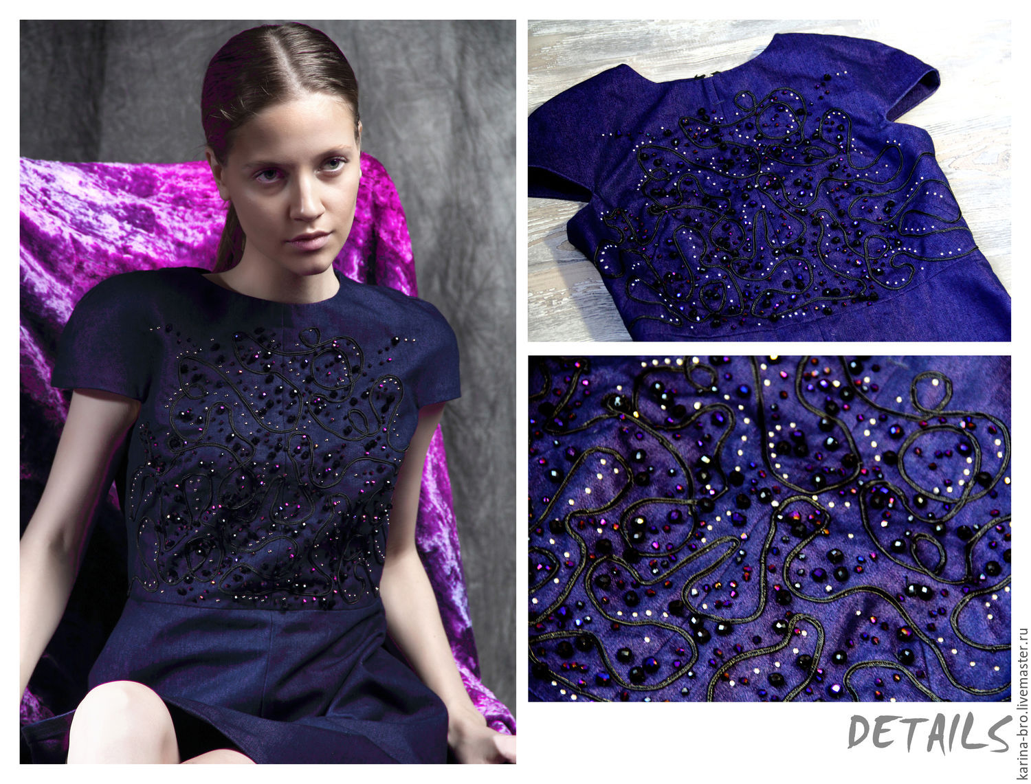 Купить Джинсовое платье "Northern Lights" - тёмно-фиолетовый, абстрактный, платье, Платье нарядное