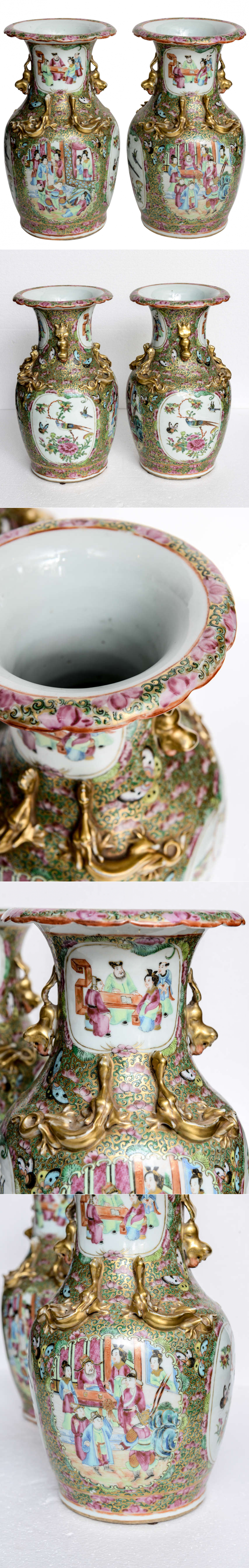 Rare Pair of Chinese Porcelain Famille Rose Vases, 19th Century For Sale at 1stdibs