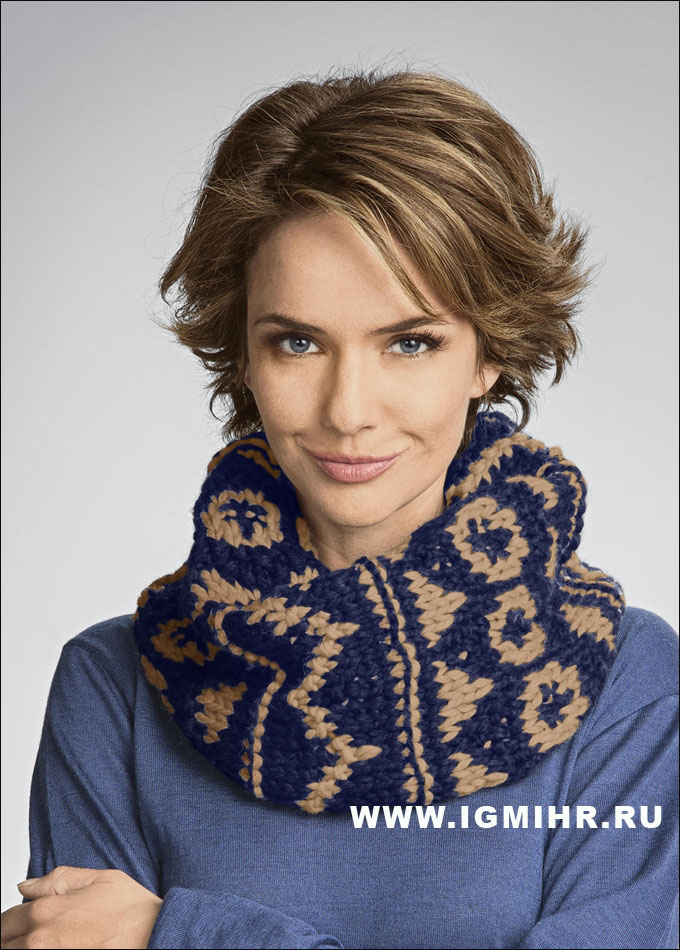 Воротник-шарф с жаккардовым узором. Спицы