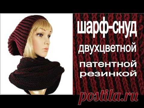 Шарф-снуд спицами двухцветный патентной резинкой Шарф мужской Шарф резинкой