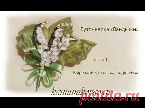 Бутоньерка "Ландыши" из шелка. Вырезание, окраска, подклейка. Ч.1