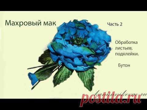 Махровый мак из шелка. Обработка листьев, подклейки, Бутон. Часть 2
