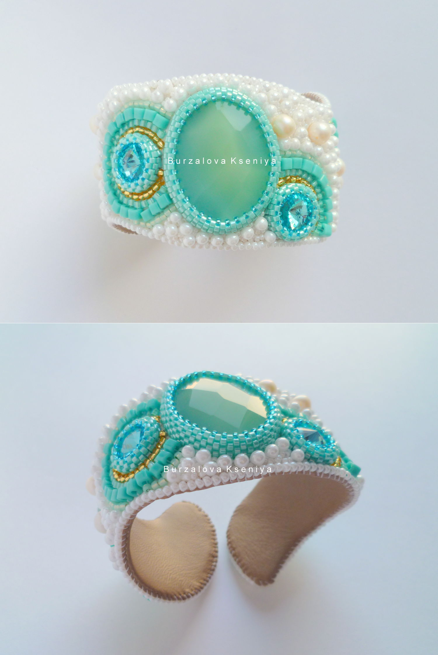 Купить Браслет 045 - браслет с агатом, браслет с жемчугом, Браслет ручной работы, Вышивка бисером