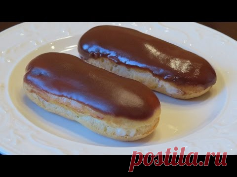 Эклеры с кремом на сгущенке и шоколадной глазурью