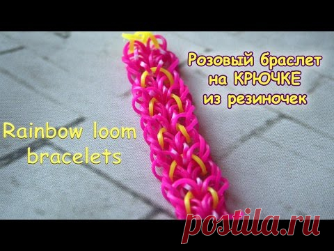 Rainbow Loom bracelets. Красивый розовый браслет на КРЮЧКЕ из резиночек: лучшее видео - YouTube