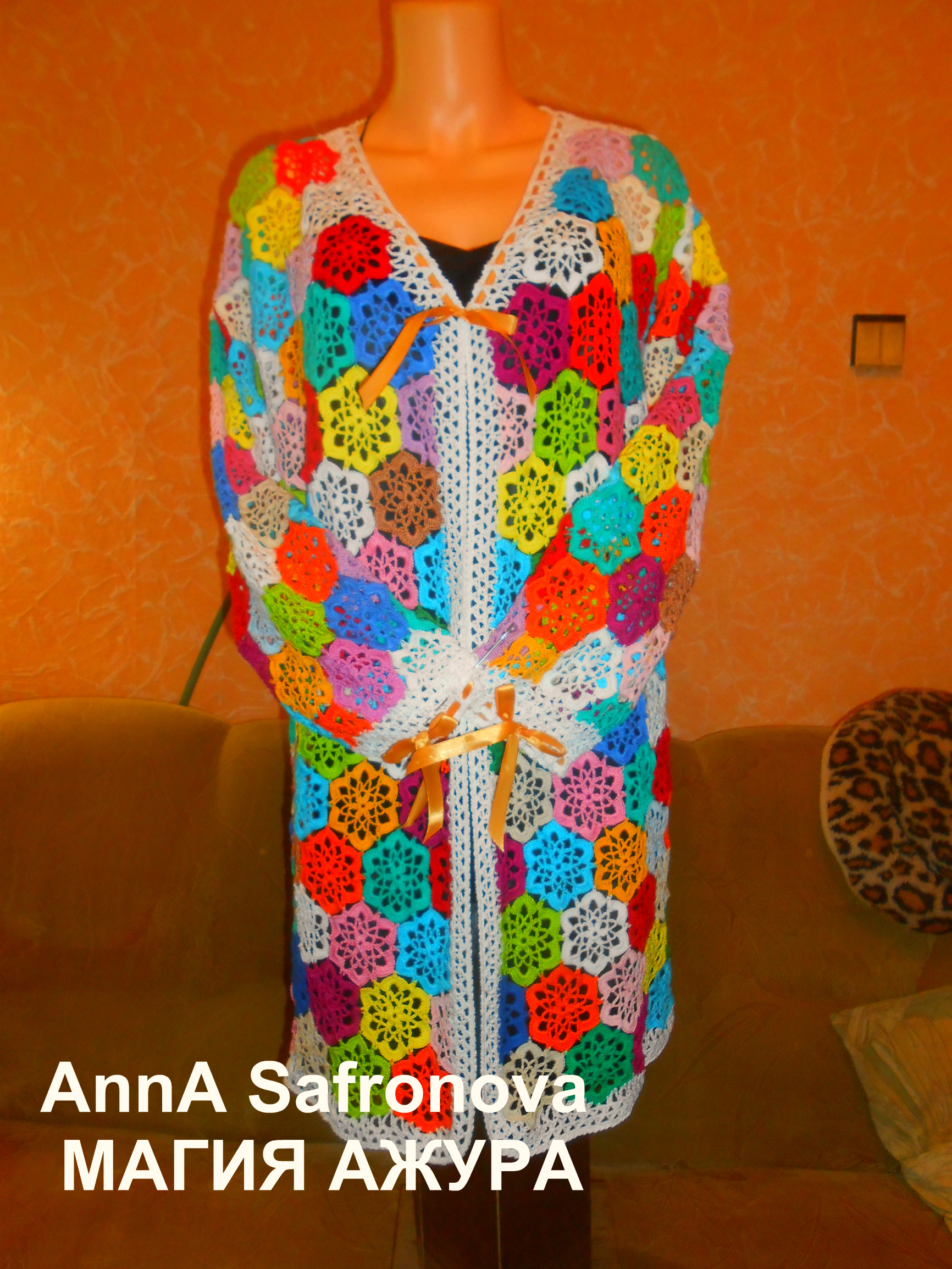 Подбираем остатки клубочков.Кардиган "Полянка"