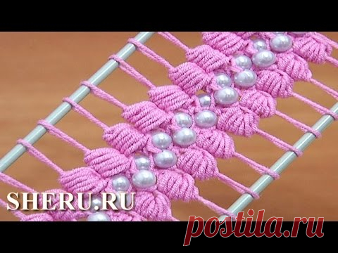 Crochet Hairpin Beaded Lace Tutorial 38 Лента на вилке с бусинками