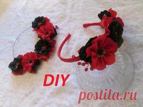 DIY / Колье и ободок для волос своими руками / Мастер класс цветы из ткани /