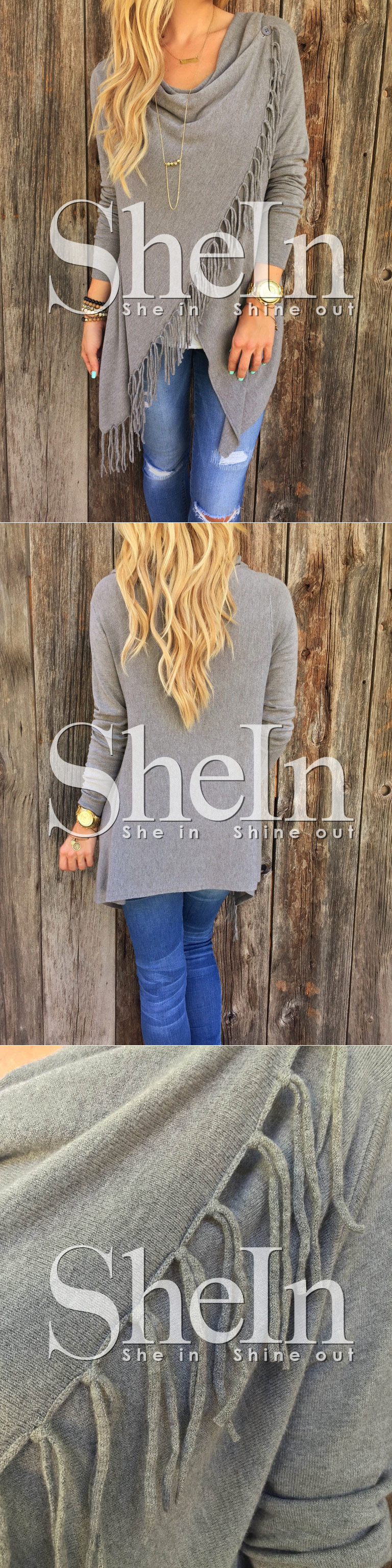 Grey Long Sleeve Tassel Sweater -SheIn(Sheinside)