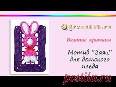 Мотив для детского пледа с зайцами крючком. (Сrochet. Motif bunny for baby blanket)