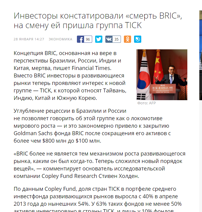 Инвесторы констатировали «смерть BRIC», на смену ей пришла группа TICK — Rambler News Service