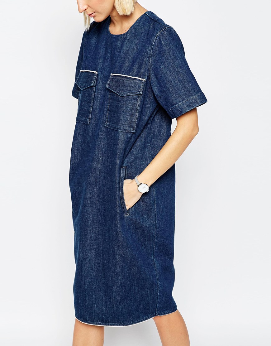 ASOS White | Джинсовое платье миди в стиле милитари ASOS WHITE на ASOS