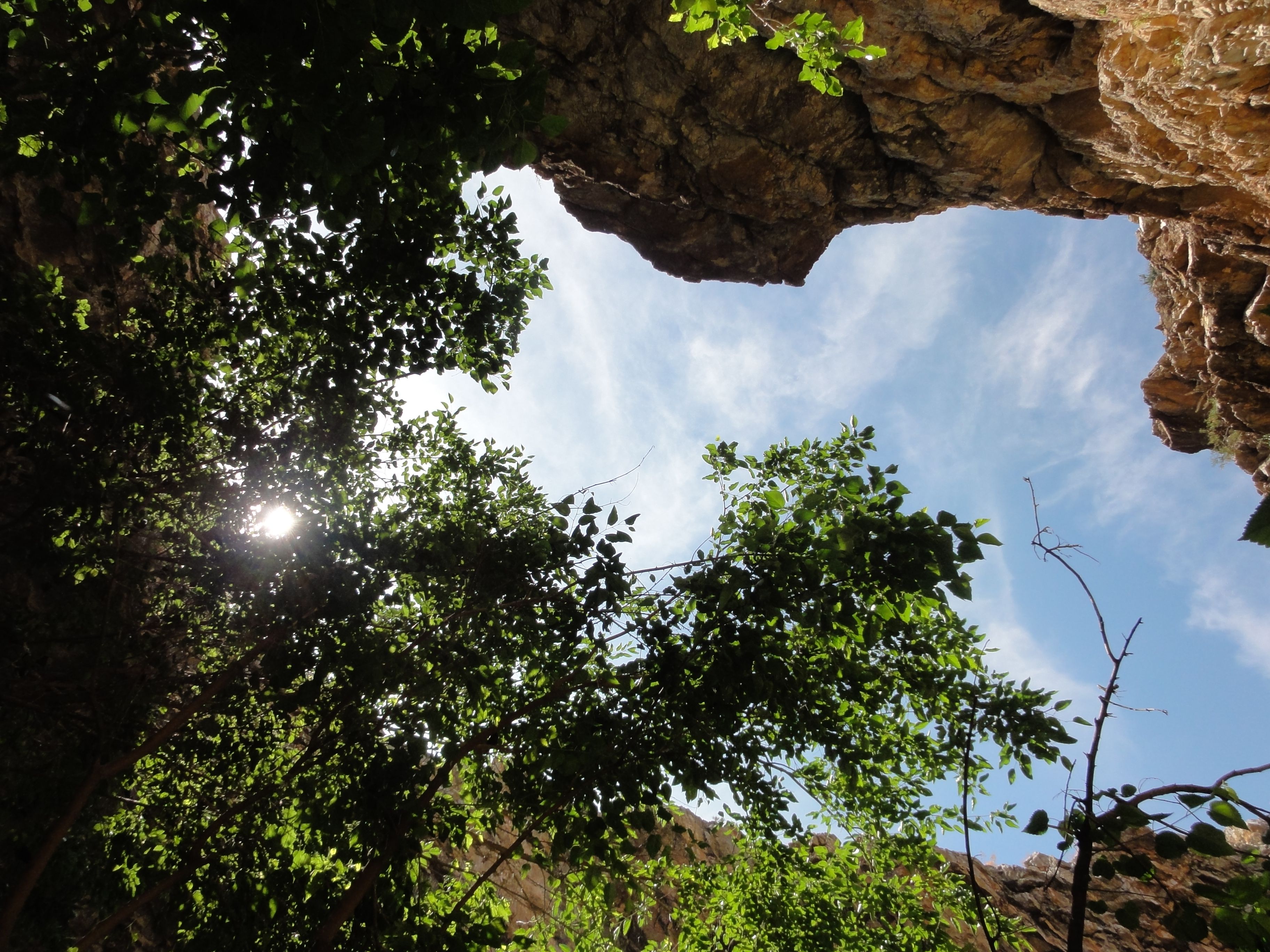 Со дна этой удивительной пещеры,взглянув вверх с различных мест, отверстие входа напоминает то парящую птицу,то треугольник.