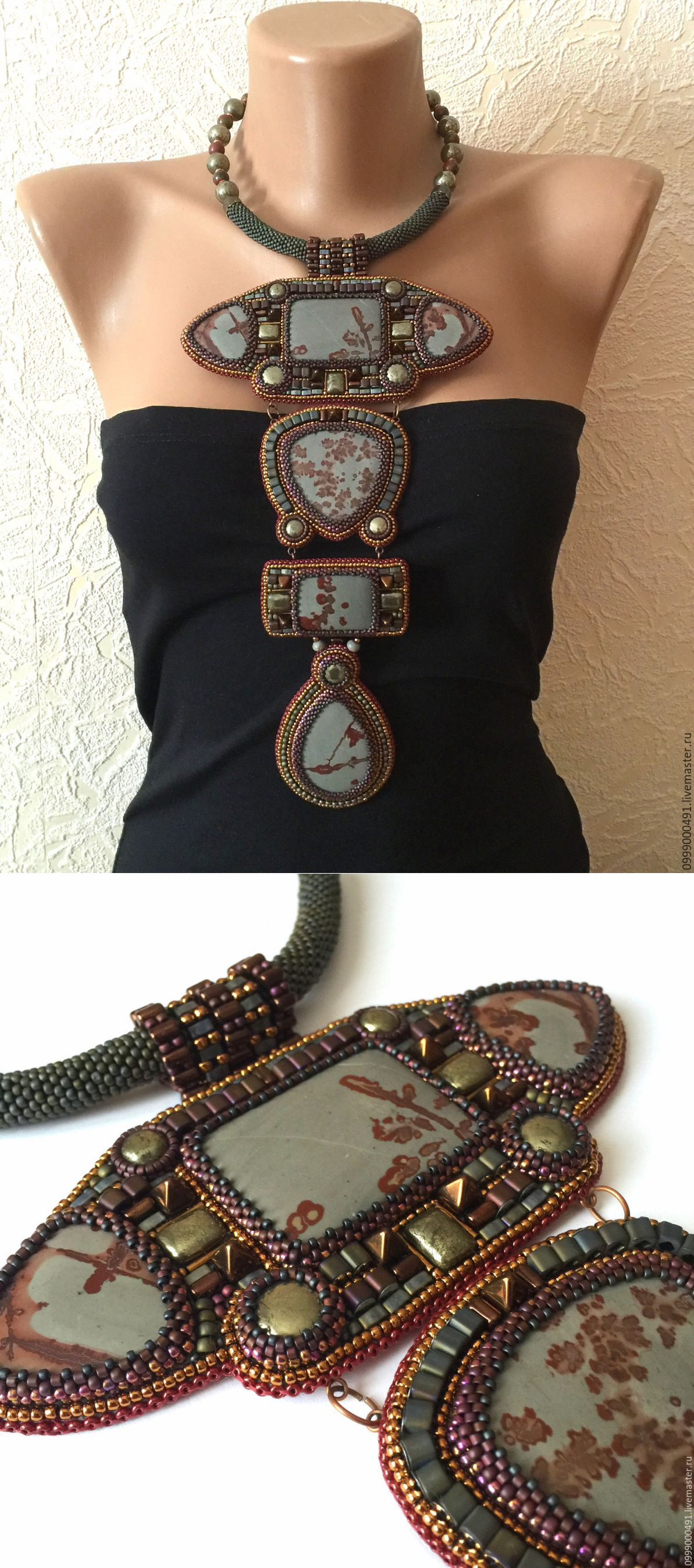 Купить Длинное колье "Fortress" . - комбинированный, бордовый цвет, серый цвет, коричневый цвет