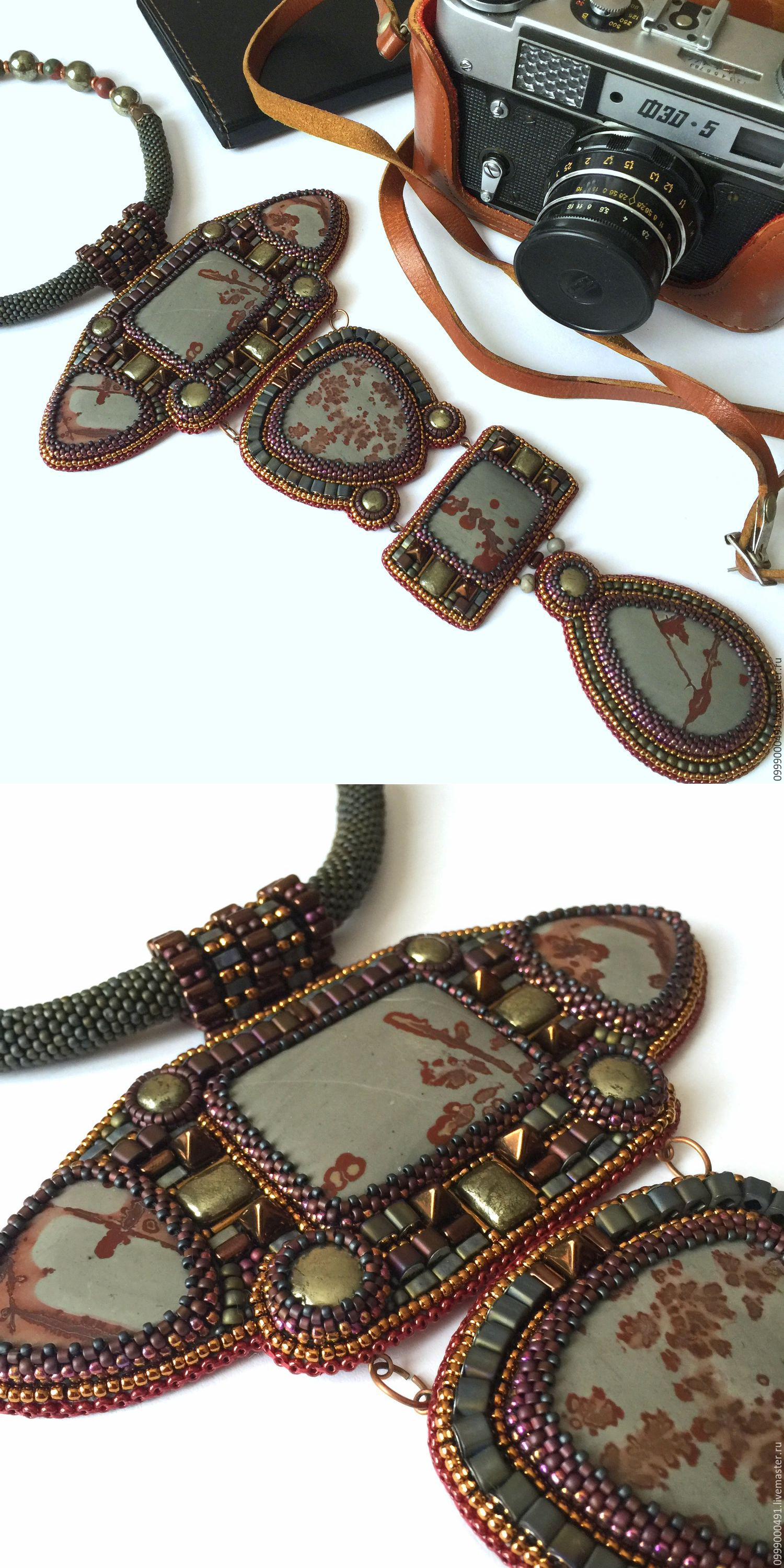 Купить Длинное колье "Fortress" . - комбинированный, бордовый цвет, серый цвет, коричневый цвет