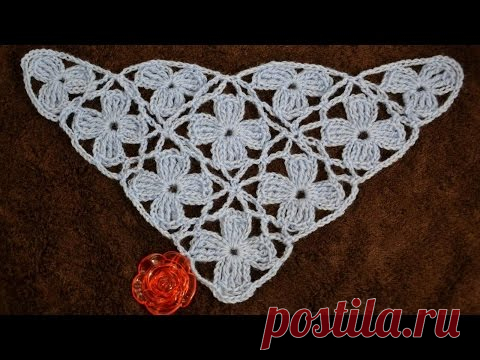 Безотрывное вязание шали из цветочных мотивов. Shawl "Blue turquoise"