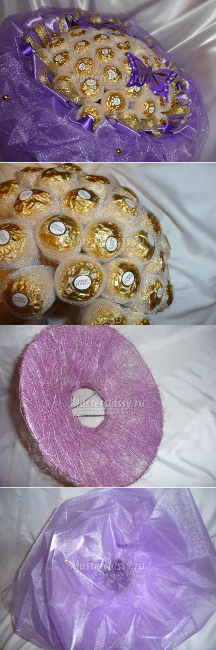Букет из органзы и конфет. Лаванда. Мастер-класс с пошаговыми фото