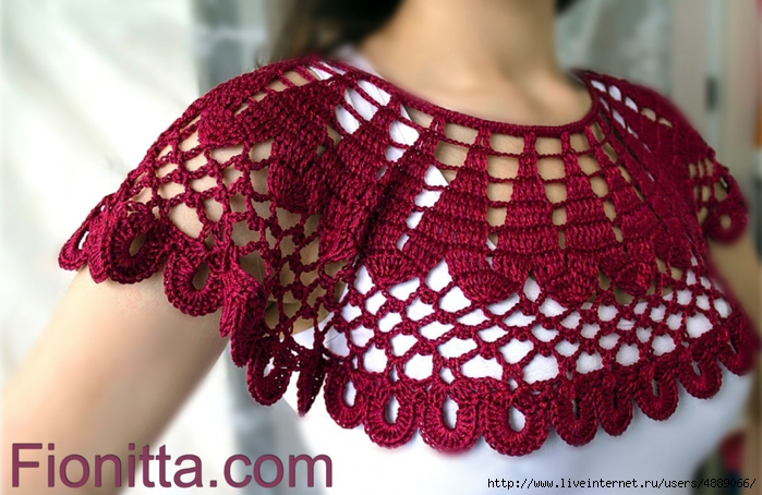 Вязание крючком воротника цвета вишни