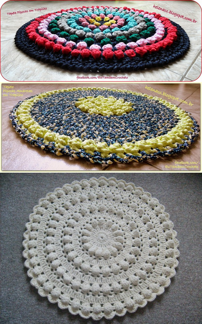 Коврик с шишечками из трикотажных полосок: вяжем крючком