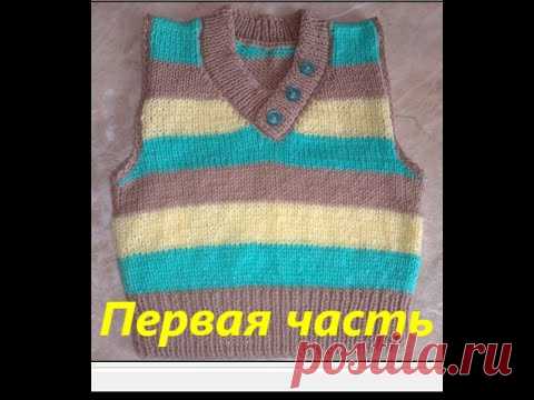 Безрукавка спицами(детская жилетка спицами)Видео урок №1.Передняя часть вязание безрукавки.Жилет.