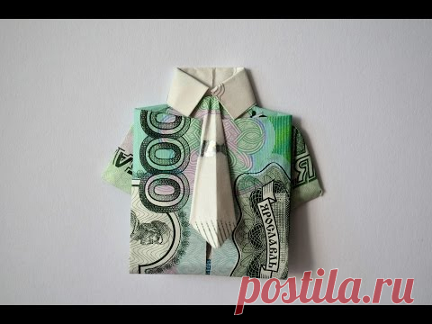 Рубашка с галстуком из денег.С серебрянным зажимом:)Как сделать рубашку из купюры.Belgium