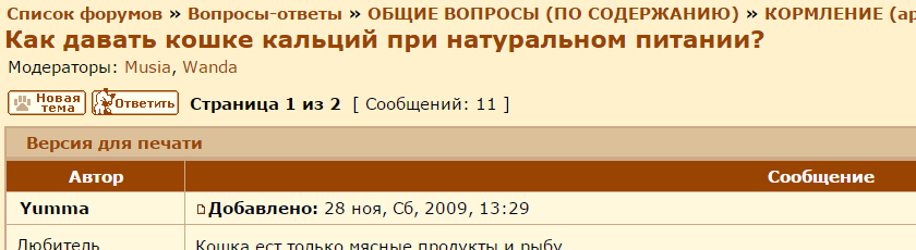 CAT-форум • Просмотр темы - Как давать кошке кальций при натуральном питании?
