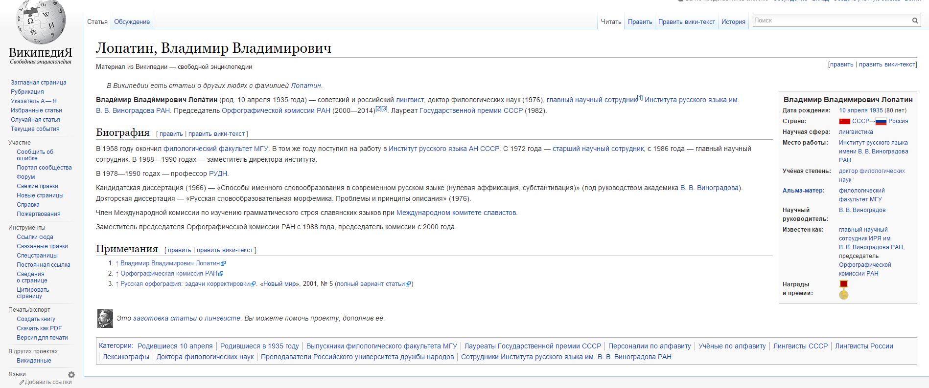 Лопатин, Владимир Владимирович — Википедия ПРИМ: ФИЛОЛОГ (АВТОРИТЕТ!!!) СМ: ОРФОГРАФИЯ