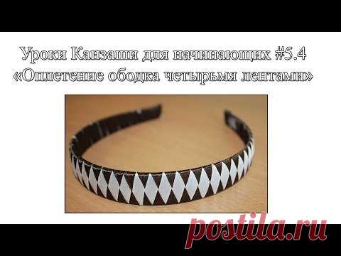 Уроки Канзаши для начинающих #5.4 "Оплетение ободка четырьмя лентами"