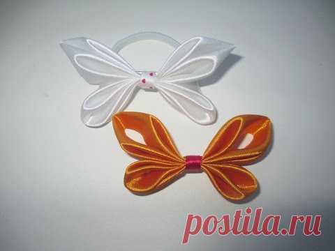 DIY/ КАК СДЕЛАТЬ БАНТИКИ - БАБОЧКИ из атласной ленты своими руками. Butterfly hair of satin ribbons