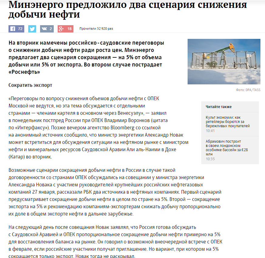 Минэнерго предложило два сценария снижения добычи нефти :: Бизнес :: РБК