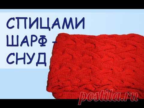 Схема вязания спицами. Шарф - снуд с узором коса из 18 петель /// knitting