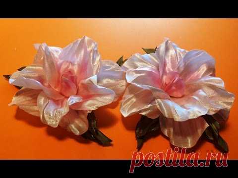 Fabric flowers how to make/satin ribbons hibiscus/tutorial/Цветы из лент:розовый гибискус/легко - YouTube