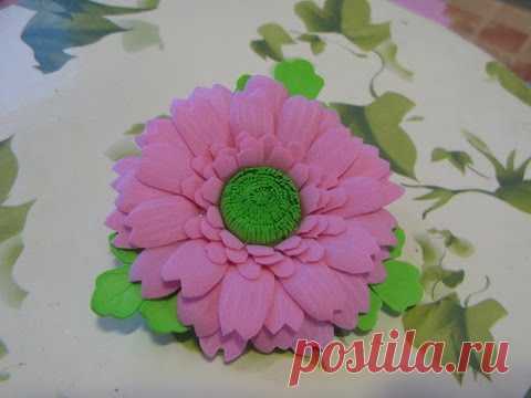 Цветы из фоамирана мастер класс. Брошь гербера из фоамирана.