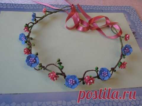 Венок с голубыми цветами из фоамирана напроволочной основе своими руками