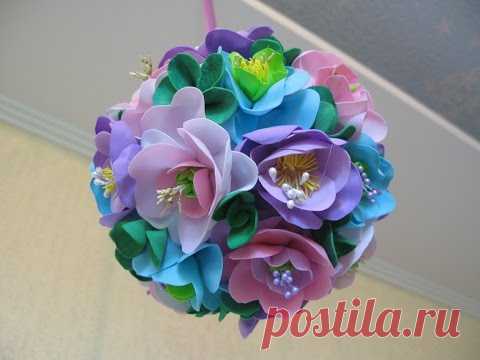 Цветы и листья из фоамирана мастер класс. Декоративный шар.
