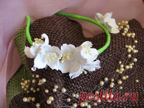 Жасмин из фоамирана - ободок для волос. Мастер класс. Цветы из фоамирана.