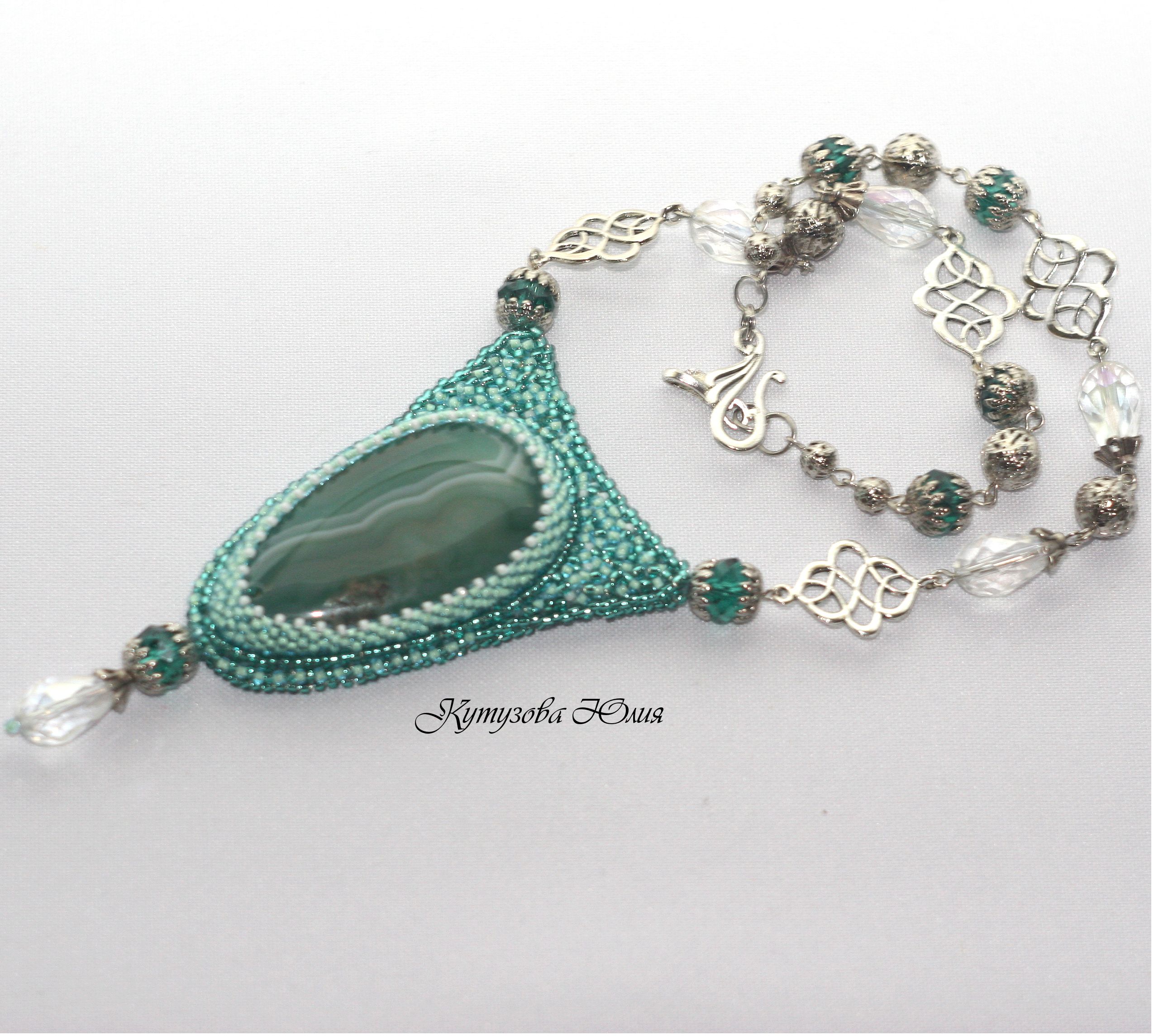 Кулон вышитый бисером Агат,хрусталики,чешский и японский бисер металлофурнитура.