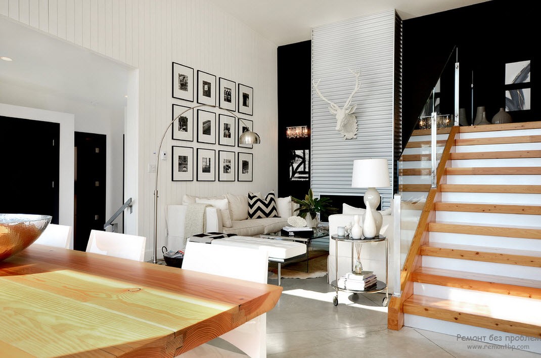 Черно-белая гостиная: комбинация противоположного в дизайне интерьера
