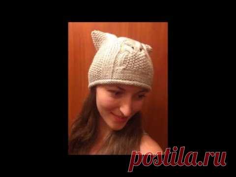 Шапка сова.Шапка кошка+шапка с ушками.Часть 1.Узор сова.Шапка СОВА спицами.Шапка спицами женская.