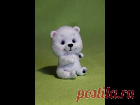 Новогодний сувенир "Северный мишка". Сухое валяние.