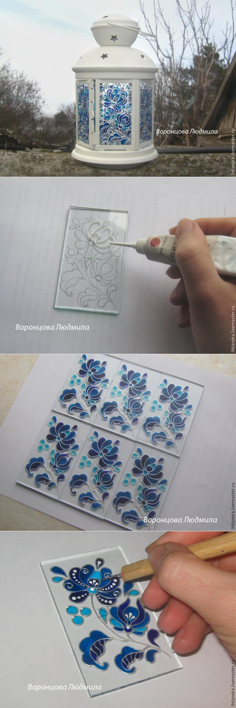 МАСТЕР-КЛАСС: ВИТРАЖНЫЙ ФОНАРИК В СТИЛЕ "ГЖЕЛЬ»